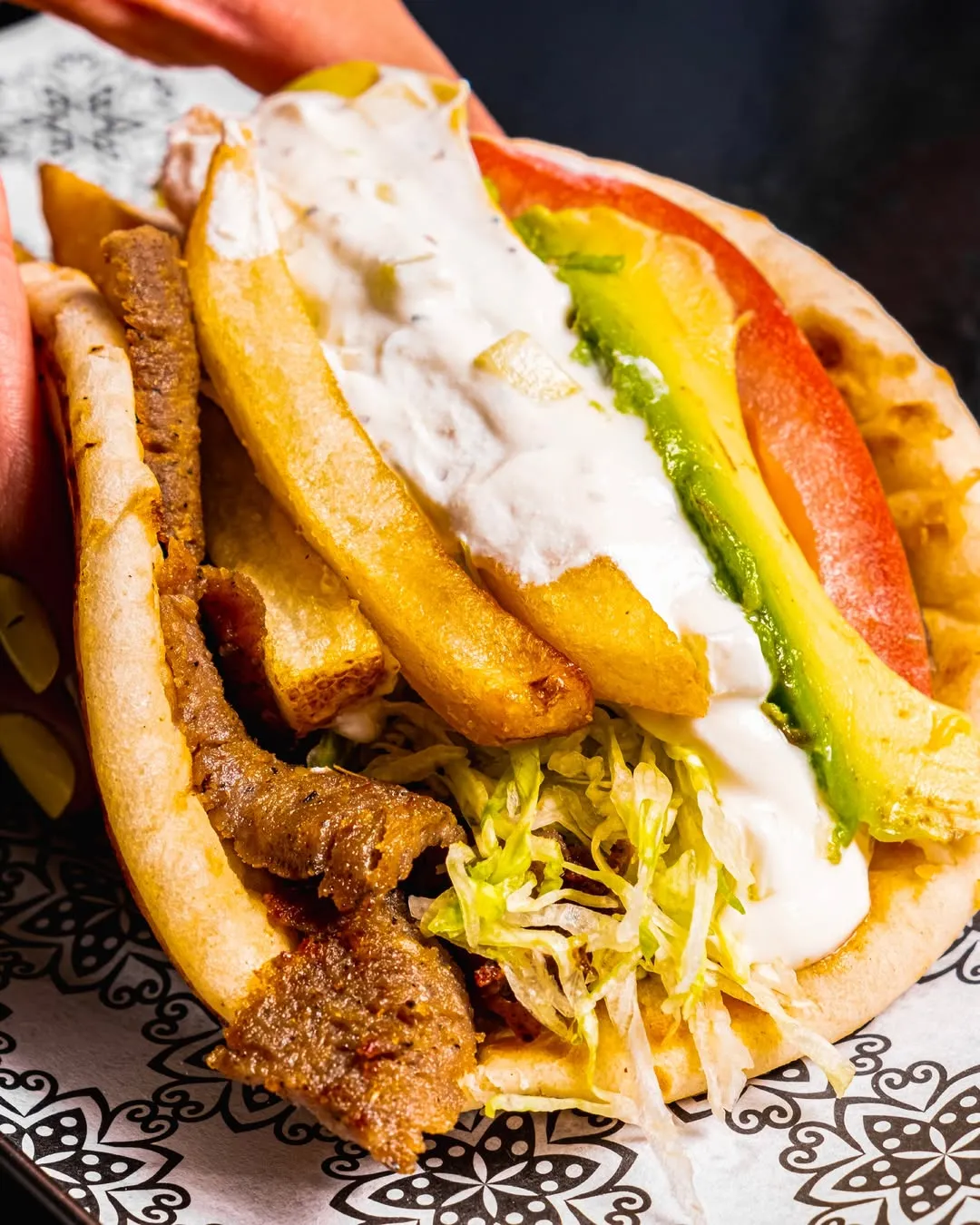 Este lugar es conocido por sus kebabes, pero también ofrecen platillos mediterráneos como kipes, tacos árabes, dedos de reina y gyros. En Kebabes by Lahm tienen tres tipos de gyros con diferentes proteínas: cordero, sirloin, mixto, pollo o falafel. Los podrás encontrar en su menú como tradicional, gyro by Lahm (con papas a la francesa dentro) y falafel (con ensalada especial de col y hummus).