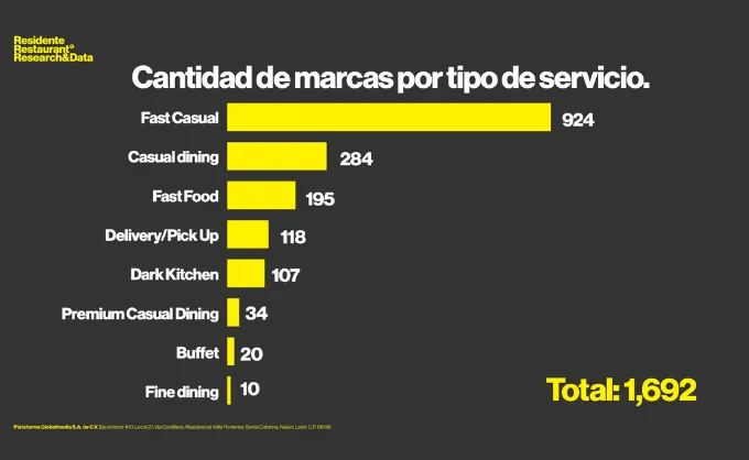 Nuevo León no se convirtió en un mercado Fast Casual por moda, sino por estructura urbana, económica y de consumo. Los datos del estudio muestran que este segmento concentra la mayor cantidad de marcas activas en el estado, muy por encima del casual, premium y fine dining, mientras que los cierres y aperturas durante la crisis del COVID reforzaron aún más su dominio.