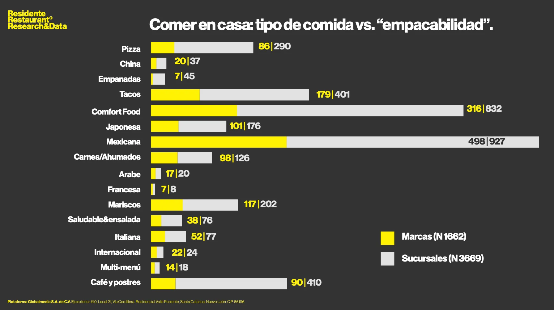 Por otro lado, categorías como la comida francesa y las empanadas cuentan con menos marcas, o restaurantes, que ofrecen los mismos términos de capacidad y servicio.