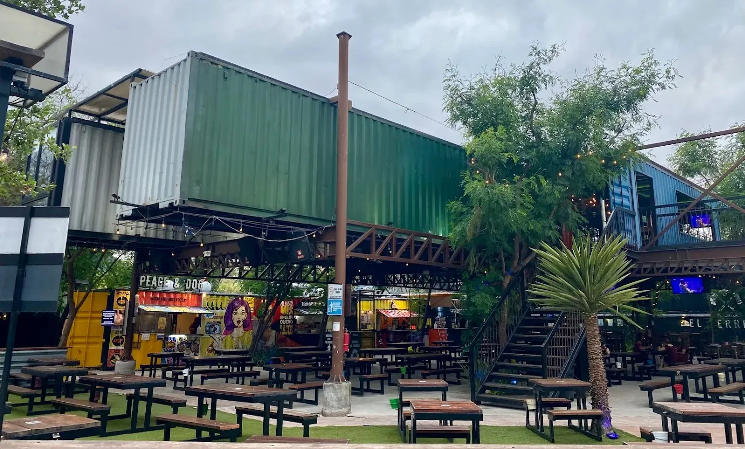 En medio de un parque industrial de Guadalupe está El Terreno Foodpark, un spot con contenedores al aire libre que combina la música, el arte urbano y la comfort food. Actualmente, es un lugar muy popular para cenar con los amigos, la familia o la pareja, de hecho tiene casi 3,000 reseñas positivas y la gran mayoría lo describe como "divertido", "agradable" y "muy recomendable".