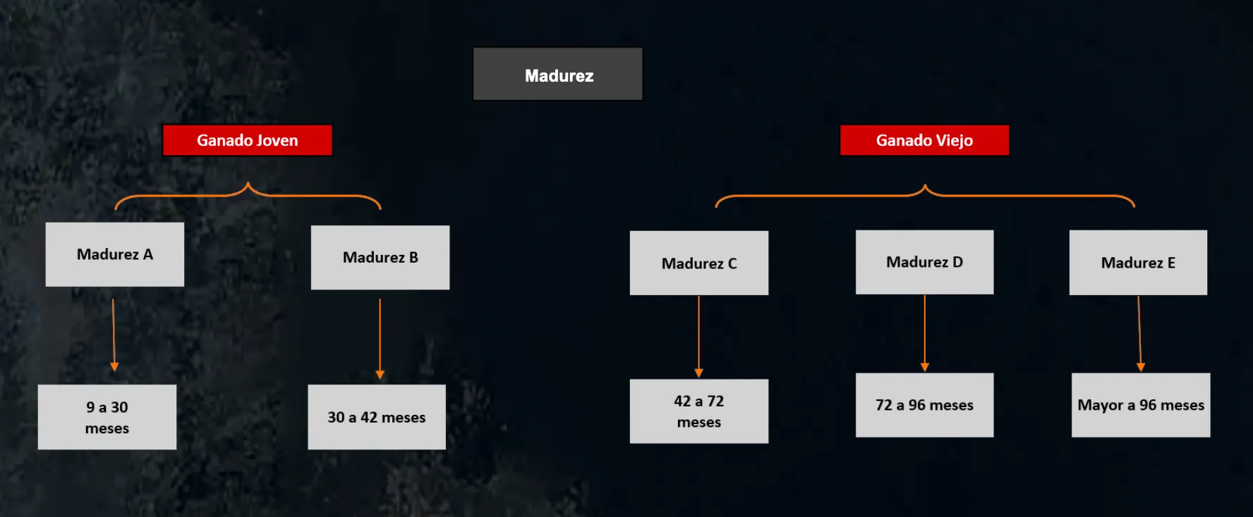 La edad del ganado influye en la calidad de la carne, un ejemplo muy sencillo es que no tenemos la misma elasticidad cuando somos adolescentes a cuando somos ya adultos mayores. Técnicamente se le nombra “madurez” a la edad fisiológica del animal y podemos clasificarla de la siguiente forma: