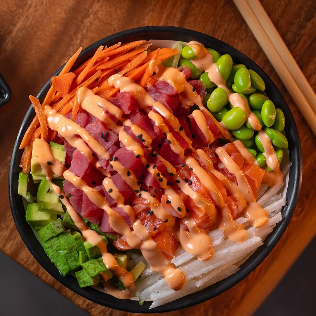 Un restaurante de cocina japonesa que entre sus opciones tiene el servicio de armar tu propio poke bowl. Cuentan con dos tamaños diferentes, chico (180 gramos) y grande (300 gramos). Aquí el poke se prepara con 1 base (arroz, quinoa, jícama, brócoli), 2 proteínas que pueden ser spicy, frescas o a la plancha (carne, surimi, pollo, atún), 2 aderezos (chipotle, salsa de anguila, salsa de la casa) y 5 toppings (queso crema, cebolla caramelizada, piña, alfalfa, betabel).