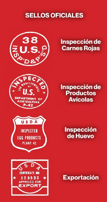Solamente los establecimientos inspeccionados por el FSIS son elegibles para exportar producto a México y es por lo que, buscando los siguientes sellos (izq.), puedes estar seguro de que estás comprando un alimento totalmente inocuo, inspeccionado y certificado para tu negocio o consumo personal.