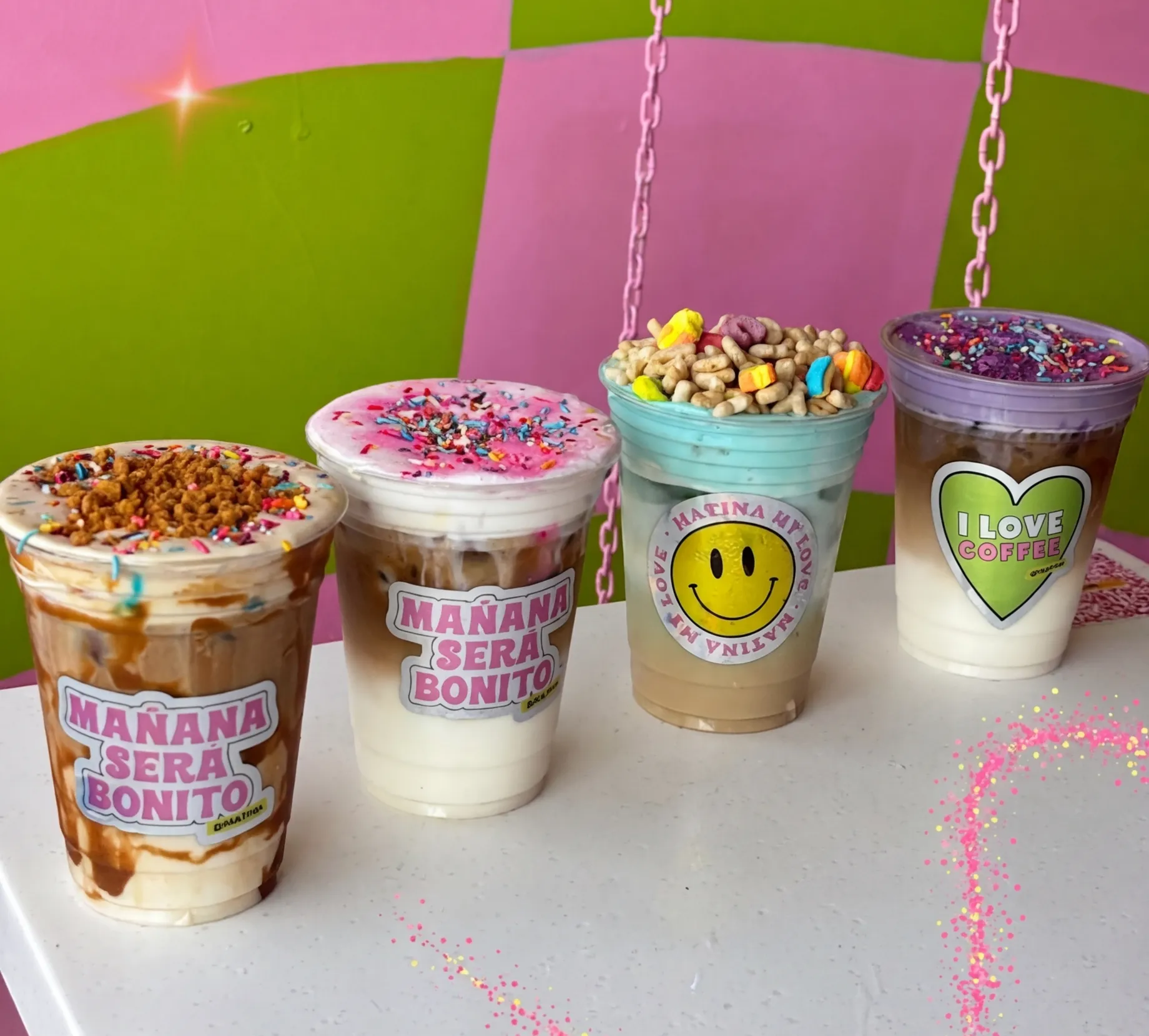 Nobody's Perfect: latte con cold foam de vainilla, brillantina comestible y chispitas de colores.