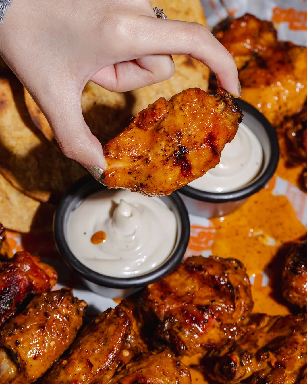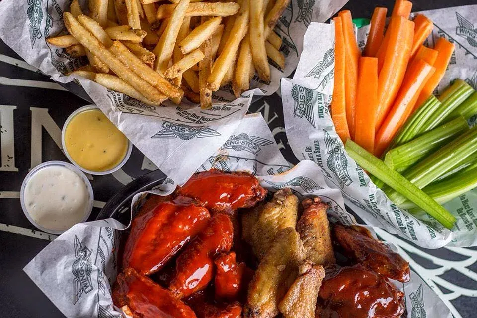 Para algunos Wingstop es una opción clásica para comer boneless, alitas y hasta tenders. Podrás pedir las alitas y los boneless por pieza (desde 5 piezas hasta 50) o por paquetes que incluyen papas a la francesa, aderezos y refresco o veggie sticks. También tienen la opción de pedir Crispy wings, que son alitas empanizadas. Cuentan con 11 salsas y 10 aderezos diferentes. Algunas de las salsas preferidas son la Original hot (la clásica) y Cajún (original con especias).
