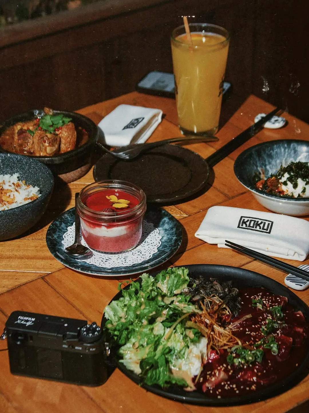 Koku es un restaurante japonés muy popular en la zona y los fines de semana suele haber lista de espera. En la carta encuentras ramen, platillos con wagyu, tiraditos, sashimi, sandos, rollos y hasta pad thai. Entre los más recomendados está el Ramen Curry (preparado con Rib-eye).