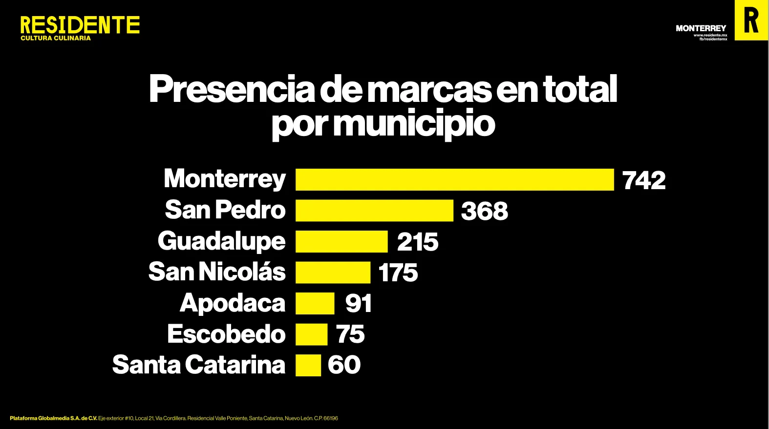 La ubicación define no solo el volumen, sino el tipo de restaurante viable. Es decir, San Pedro concentra una mayor presencia en plazas comerciales y conceptos de ticket medio-alto, mientras que el centro de Monterrey y Guadalupe muestran una mezcla de formatos independientes. Esta diferencia explica por qué un modelo exitoso en una zona puede fracasar en otra aun estando a pocos kilómetros de distancia.