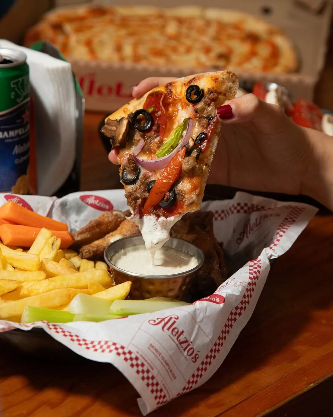 Este restaurante es una mezcla de cocina italiana y comfort food estilo Nueva York, pues así como ofrece pastas, stromboli y lasaña, también prepara alitas, boneless y jalapeño poppers. Cuenta con 21 recetas diferentes de pizza, las cuales podrás pedir por rebanadas, como en Nueva York, o en cuatro tamaños diferentes (el más grande 45 centímetros de diámetro). Entre sus pizzas más vendidas están New York (salsa de tomate, mozzarella y aceite de oliva), Brooklyn (extra queso, pepperoni, cebolla, pimiento) y Con Todo (carne molida, aceitunas, hongos, salchicha, queso, cebolla, pepperoni).