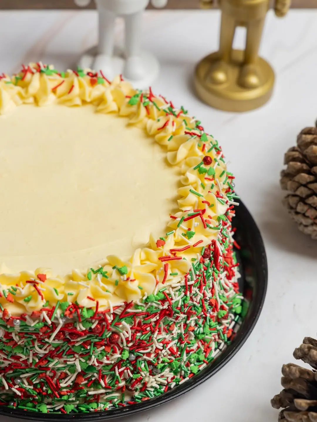 Para las fiestas decembrinas esta repostería ha preparado cuatro pasteles alusivos a las fechas por su decorado con chispas de colores rojo, verde y blanco. Los sabores disponibles son zanahoria, grageito, choconutella y red velvet, los puedes pedir en tamaño chico, mediano o grande. El color rojo, de acuerdo a la tradición de Año Nuevo, atrae la seguridad, el amor e incluso la determinación. La forma circular de los postres simboliza la buena suerte.