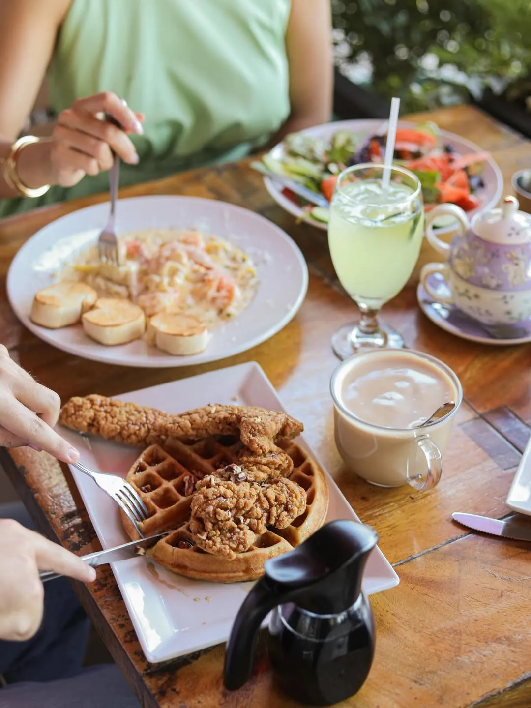 Restaurante con un concepto europeo con terraza al aire libre. En el menú podrás encontrar crepas, sándwiches, pasta, huevos preparados y ensaladas. Sus platillos destacados son el breakfast sandwich (con huevo, jamón y queso) y los Chicken and waffles (con pollo frito de la casa y nuez). De tomar ofrecen variedad de café, té, limonada y mimosas.